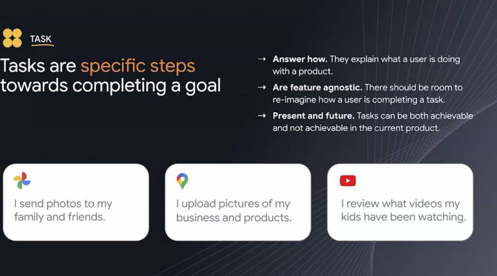 The tasks users take to achieve those goals may involve your company’s products and features, Barga-Avila said, but also those of other organizations. Some tasks will happen outside the use of a digital application or tool. Good UX also takes into account how these tasks might be completed now as well as in the future, he said, and identify tasks that aren’t achievable within the current product.
