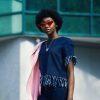 Shift dress from Ganni in Total Eclipse. Allover floral print. Round neckline. Concealed back zip closure. Long sleeves with black piping at cuff. Straight hem. Unlined. Casual fit.